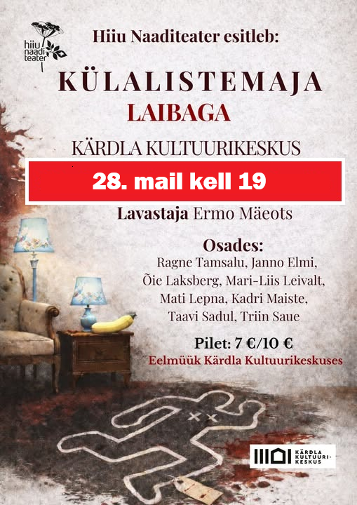 28. mail kell 19 Naaditeatri etendus Külalistemaja laibaga. Kehtivad 20. aprilliks ostetud pääsmed.